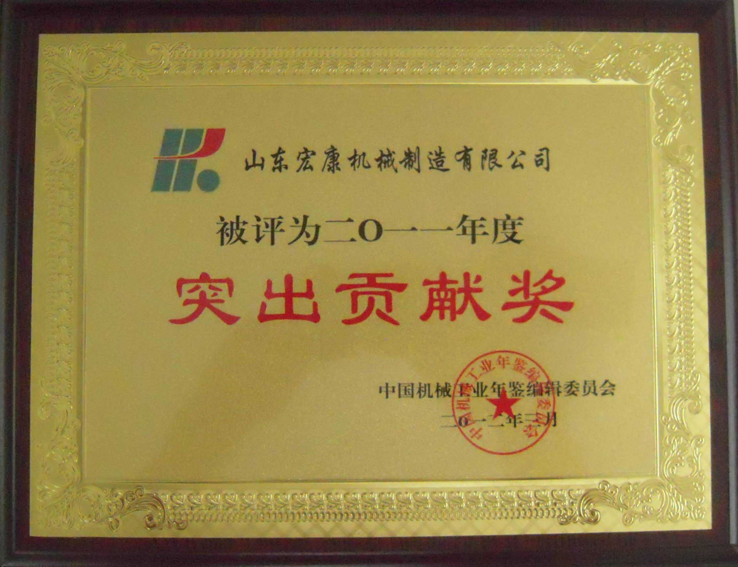 集团被中国机械工业年鉴编辑委员会授予“2011年度突出贡献奖”