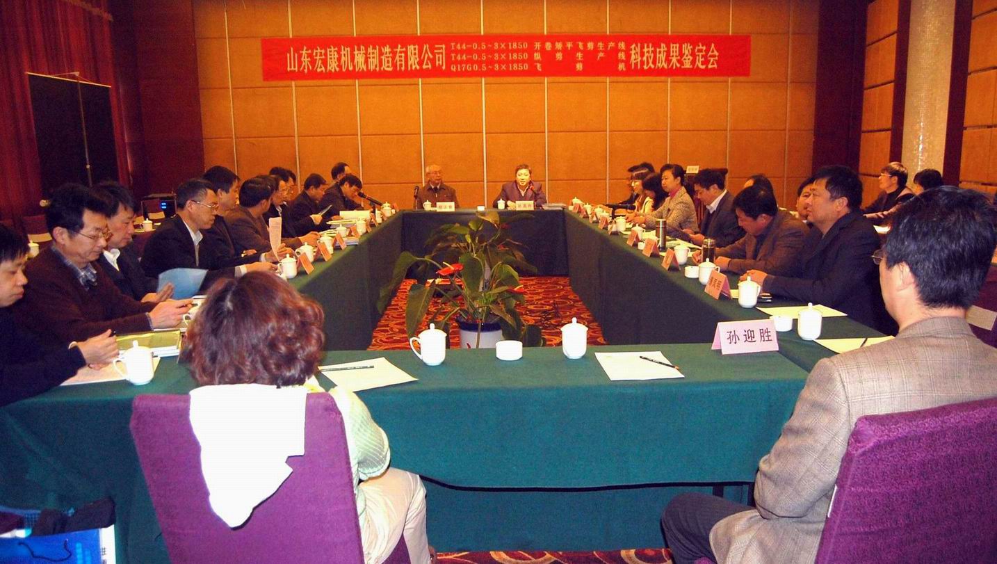 12月27日至28日,公司科技成果鉴定会在泰安市正元名饮国际酒店召开。山东省科技厅、山东省经济和信息化委员会组织专家对公司承担完成的三项科技成果进行了会议鉴定和验收。T44-0.5~3.0×1850开卷矫平飞剪生产线达到同类产品的国际先进水,T44-0.5~3.0×1850开卷矫平纵剪生产线达到同类产品的国际先进水平,Q17G0.5~3×1850飞剪机达到国内领先水平。